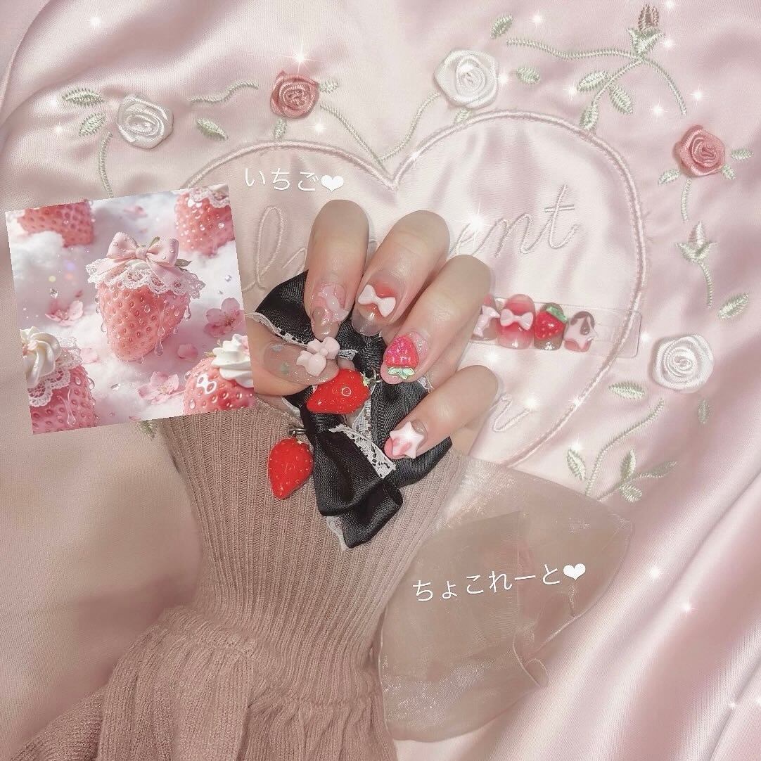 #ネイル #ネイルチップ #ジェルネイル #ゆめかわネイル#苺みるく