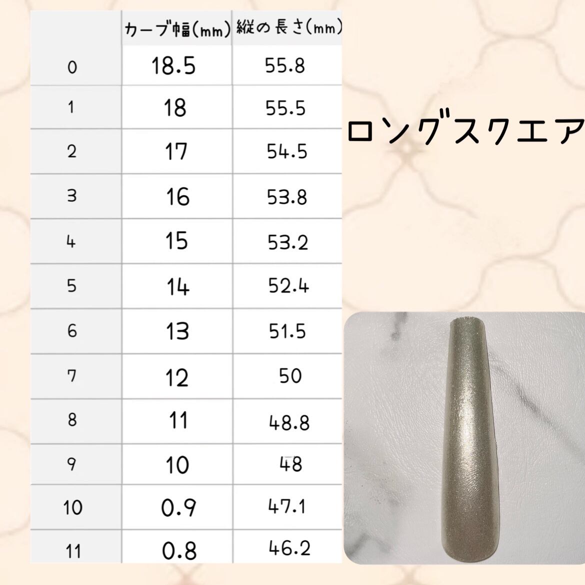 ロングスクエアサイズ表